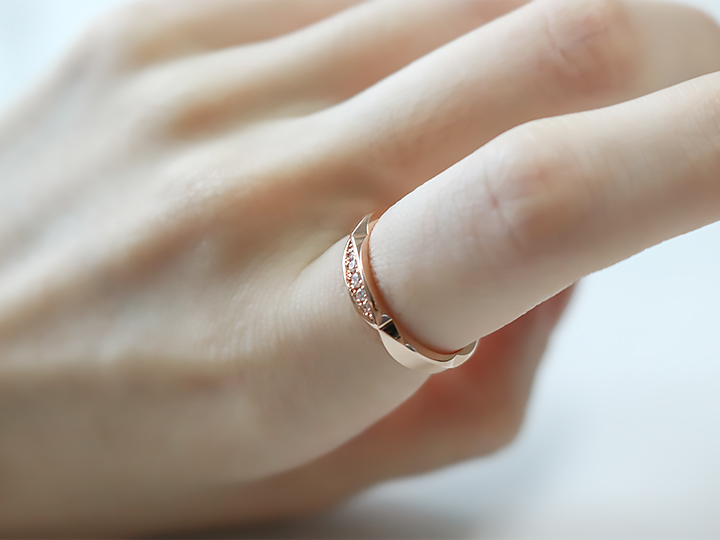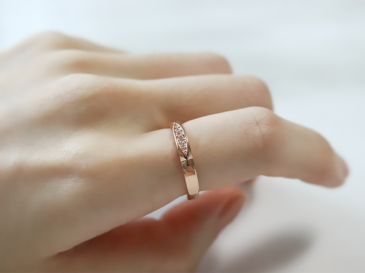 0.05ct의 다이아몬드가 세팅된 상단부는 자연의 곡면과