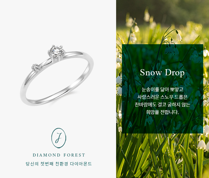 0.10ct의 메인 다이아몬드와 스노우 드롭의 꽃잎 끝 하트모양을 닮은,