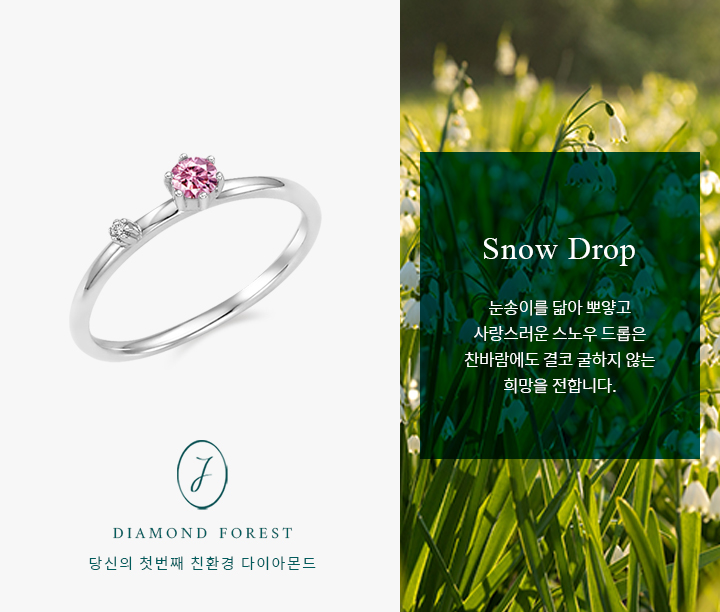 0.10ct의 메인 다이아몬드와 스노우 드롭의 꽃잎 끝 하트모양을 닮은,