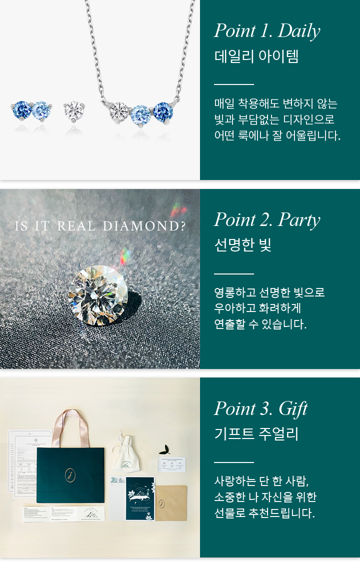 유사보석이 아닌 천연 다이아몬드와 물리적, 화학적, 광학적으로 100% 동일한 성분 입니다.