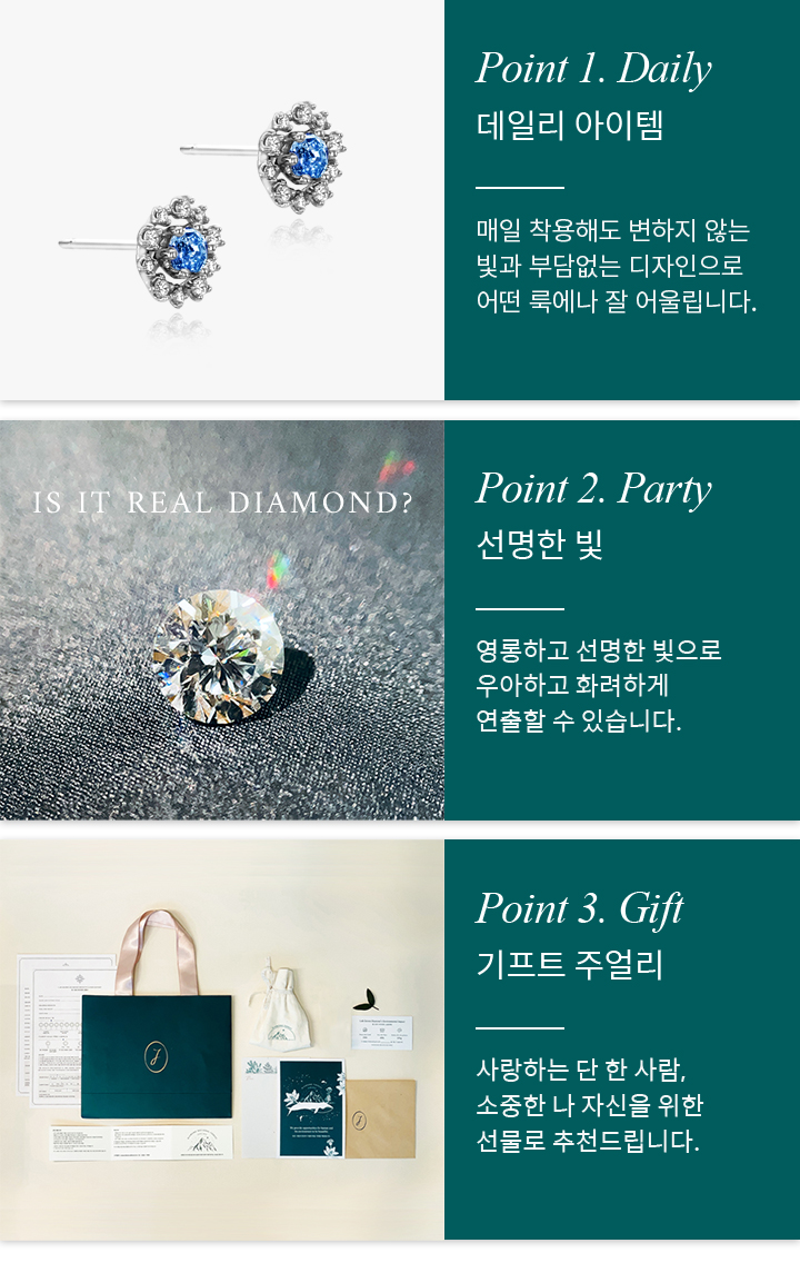 유사보석이 아닌 천연 다이아몬드와 물리적, 화학적, 광학적으로 100% 동일한 성분 입니다.