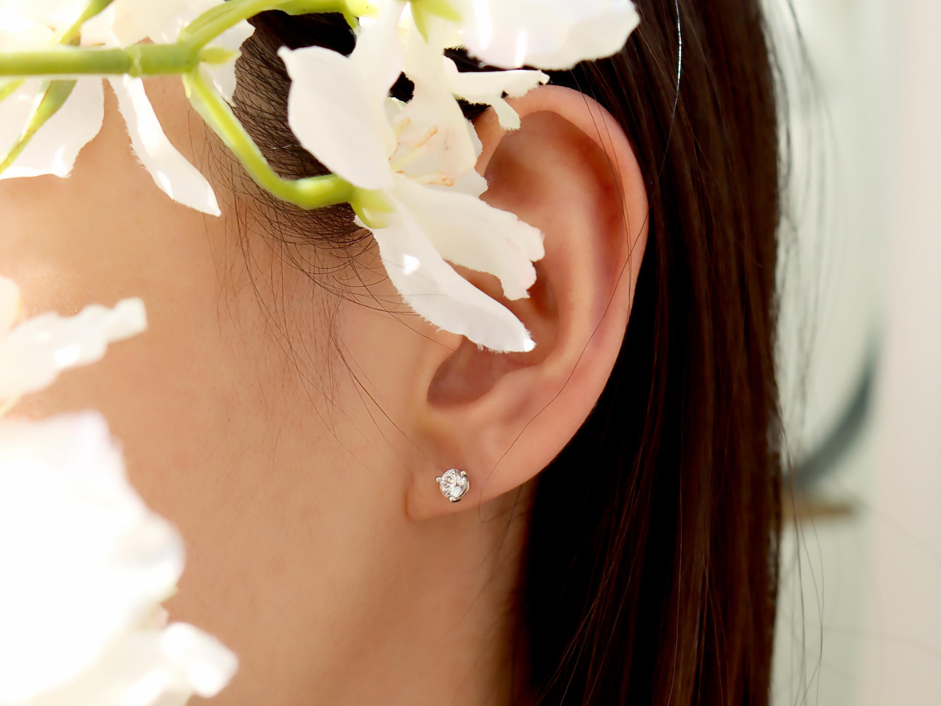 심플한 디자인의 3부 다이아몬드 피어싱으로,
