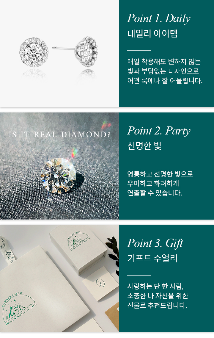 다이아몬드 포레스트의 다이아몬드는 최상의 Excellent컷, D-F등급의 투명한 컬러,
